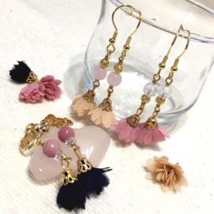 フラワーチャームとパワーストーンを使ってピアスorイヤリングを作りましょう。
