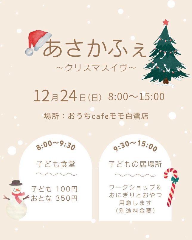 12/24(日)は、「あさかふぇ」でWS♪