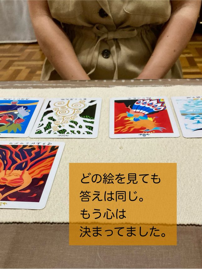 たくさんお話しして、たくさんカードを並べたけれど、どのカードを見ても語られる思いは同じ。ご自身の答えはもう出ているようでした。